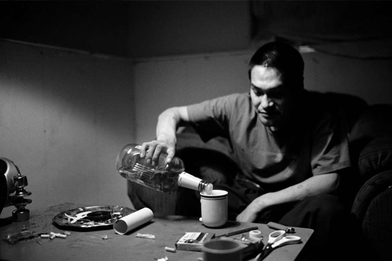 Si se te enseña que tu modo de vida no vale nada, ¿qué puedes hacer? Y cuando se te fuerza a vivir esta nueva vida, ¿qué opciones tienes? Sin trabajo y sin educación en el mundo de los blancos, no sólo no puedes competir en ese mundo, sino que además has perdido la conexión con tu propio modo de vida. Ahora no tienes educación en ninguno de los dos mundos: ni en el innu ni en el no innu. La única solución para esconder el dolor es recurrir a la botella de la destrucción.
