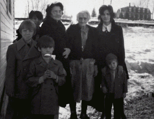 Anne Mari Simeon, o Almanda como la llamaban todos, "kukum (abuela en innu) con parte de su familia. Foto estraída del album personal de Michel Jean.