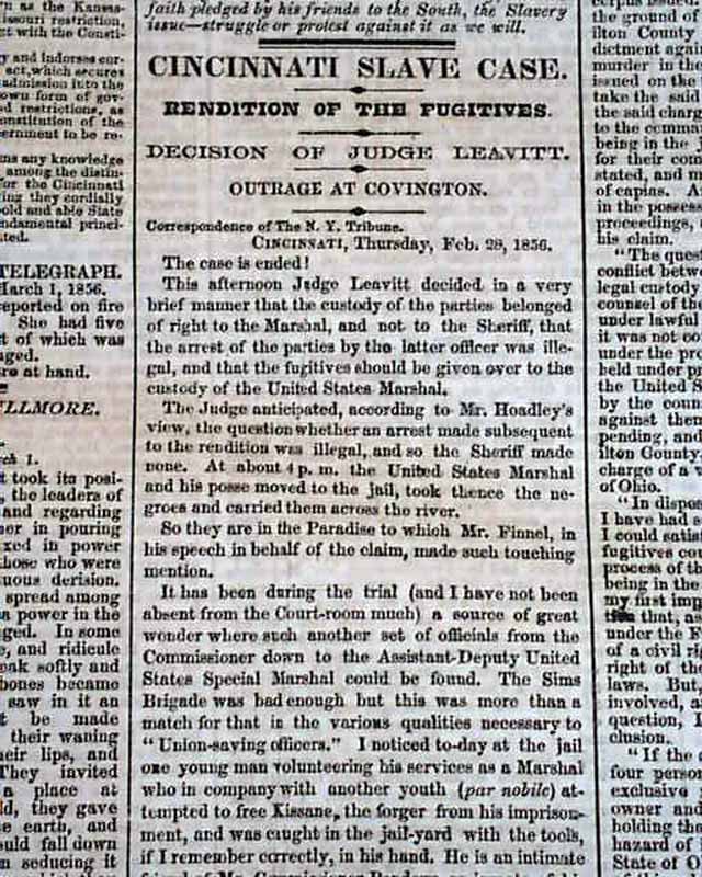Un notable residente de Ohio, el gobernador Salmon P. Chase, también buscaba un cargo de asesinato. Más tarde, Chase pasó a ser Senador de los Estados Unidos, Secretario del Tesoro de los Estados Unidos y Presidente del Tribunal Supremo de los Estados Unidos.