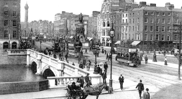 "Los dublineses más elegantes rara vez cruzan el puente O'Connell, a no ser que se dirijan a un encuentro de carreras en el Phoenix Park o sean llevados, con los dedos de los pies hacia arriba, en su viaje final a Glasnevin" - Douglas Goldring, 1917
