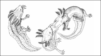 Clase: Amphibia Orden: Caudata Familia: Ambystomatidae Género: Ambystoma. Distribución: Es una especie endémica del valle de México, solía ser sumamente abundante en los lagos y humedales que salpicaban la zona, pero conforme estos han ido desapareciendo, el axolotl también. Estatus: En peligro crítico de extinción, si acaso sobreviven unos pocos ejemplares en vida libre en los canales de Xochimilco, aunque en cautiverio existen poblaciones numerosas. Alimentación: Cazan cualquier presa que quepa en su boca: moluscos, insectos, peces, crustáceos, larvas acuáticas, lombrices, anfibios y crías de su misma especie. Aspecto: Cabeza prominente, cola más larga que el cuerpo. La coloración nominal suele ser pardusca, verde oscuro o marrón, con manchas negras, café y blanquecinas. En el mercado de cautiverio se han establecido variedades albinas, leucísticas, melanoides, doradas y más. Tamaño: Llegan a medir hasta 30 cm de largo y a pesar más de 200g. Esperanza de vida: En libertad entre 10 y 15 años, en cautiverio el récord ronda los 30.