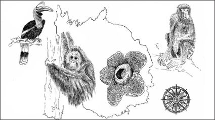 Latitud: 0°0'0''NLongitud: 114°0'0''E El ecuador atraviesa la isla por la mitad. ecuatorial) Localización: Sudeste asiático / Indonesia, al sur de la península malaya entre Sumatra, Sulawesi y Filipinas. Centro geográfico de Insulindia, el mayor de los archipiélagos del mundo. Tamaño: 748.168 km2 (es la tercera isla más grande del mundo). Población: 23.720.000 habitantes (censo de 2020) divididos entre tres naciones. Vegetación: La mayor parte de la isla solía estar cubierta por selva húmeda, con manglares y pantanos bordeando las zonas costeras y bosque mesófilo de montaña en áreas serranas, pero los monocultivos de palma comienzan a reclamar porciones cada vez más grandes de terreno. Hay unas 15.000 especies de plantas con flor y 3.000 de árboles, destacan la amplia diversidad de plantas carnívoras y la Refflesia, la flor más grande del mundo. Fauna: Se registra un alto grado de endemismo en todos los grupos de animales. Entre sus organismos más emblemáticos están los orangutanes de Borneo, los monos de probóscide, los elefantes y rinocerontes enanos, los tiburones de río, los leopardos nubosos, las civetas de Hose, los calaos rinoceronte y de casco, los murciélagos gigantes de Dayak y las pitones de sangre. Estatus de conservación: Aunque el 16% de su superficie figure como área natural protegida, la devastación forestal de las últimas décadas ha sido atroz. Entre 2002 y 2019 en la porción malaya se perdieron 4,4 millones de hectáreas de árboles (1,9 de bosque primario), y 10,7 millones de hectáreas (4 de bosque primario) en la de Indonesia.