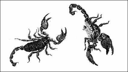 Clase: Arachnida Orden: Scorpiones Familia: ScorpionidaeGénero:Pandinus Distribución: Amplia, habitan en selvas y sabanas de África Occidental, como el Congo, Senegal, Sierra Leona, Gabón, Costa de Marfil, Ghana, Guinea, Nigeria y Togo. Estatus: Debido, en parte, a su popularidad en el mercado de mascotas, sus poblaciones silvestres se han visto mermadas y la especie se incluye en el segundo apéndice de la cites. Alimentación: Son estrictamente carnívoros, cazan principalmente insectos y otros arácnidos, aunque los ejemplares más grandes también se alimentan de reptiles y pequeños mamíferos. Aspecto: Se trata de organismos imponentes, corpulentos y macizos, su color negro lustroso les brinda una apariencia metalizada. Además de su macizo aguijón, cargan tenazas poderosas. Tamaño: Son uno de los miembros más grandes del grupo de los escorpiones, llegan a medir hasta 20 cm y a pesar unos 30 g, pero normalmente oscilan entre los 12 y los 18 cm. Esperanza de vida: En libertad se estima que llegan a vivir entre 5 y 8 años, pero en cautiverio el récord para la especie ronda los 10.