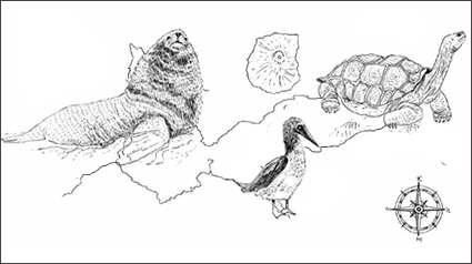 Latitud: 0°40'0'' S Longitud: 90°33'0'' W justo sobre el paralelo 0º (línea ecuatorial) Localización: Océano Pacífico, a 972 km de la costa ecuatoriana (América del Sur). Tamaño: 7.970 km2 repartidos entre 13 islas principales, 6 menores y 107 rocas e islotes. Población: 33.042 habitantes (censo 2020) / 200.000 visitantes anuales máximo. Vegetación: La mayor parte de las islas presenta vegetación seca o semiárida y las zonas más elevadas de algunas de las islas más grandes, vegetación tropical. La flora incluye poco más de 500 especies de plantas vasculares originarias (de las cuales 180 son endémicas). Fauna: Buena parte de los animales presentes son endémicos. Tortugas gigantes, iguanas marinas y terrestres, serpientes, leones marinos, pingüinos, pinzones, cormorán no volador, búhos, pelícanos, ballenas, delfines, más de 300 especies de peces y cerca de 2.000 invertebrados. El único grupo de vertebrados no presente es el de los anfibios. Estatus de conservación: El archipiélago conforma la segunda reserva marina más grande del planeta, desde 1959 figura como parque nacional y desde 1978 es Patrimonio de la Humanidad de la unesco. Se considera como una provincia biogeográfica prioritaria